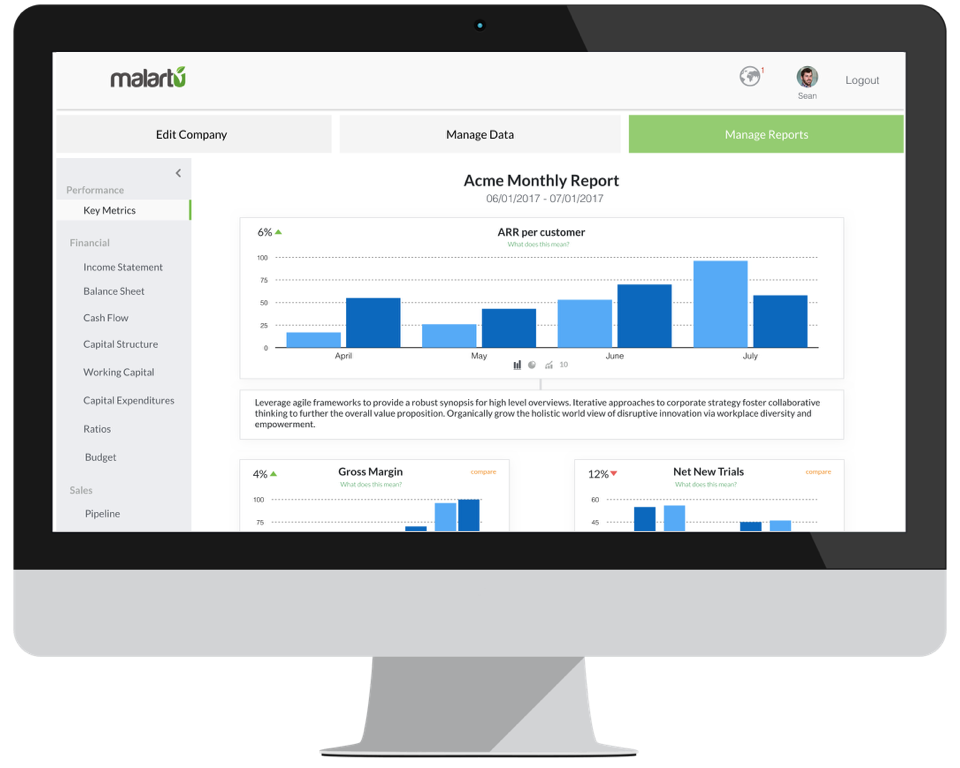 The Malartu platform aggregates and normalizes data from your locations, creating a franchise master sheet in real time. Compare the performance of your locations side-by-side in your dashboard to get a bigger picture of your franchise performance. Export to other integrated programs for further analysis or storage.